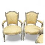 Suite de quatre FAUTEUILS en bois sculpté, mouluré et rechampi de forme cabriolet Epoque Louis XVI