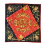 Françoise de la PERRIERE pour HERMES Paris Alsace - enseignes Carré en soie imprimée, 1ére édition : 1960 90x90cm État: déchiré, fils tirés, décoloration