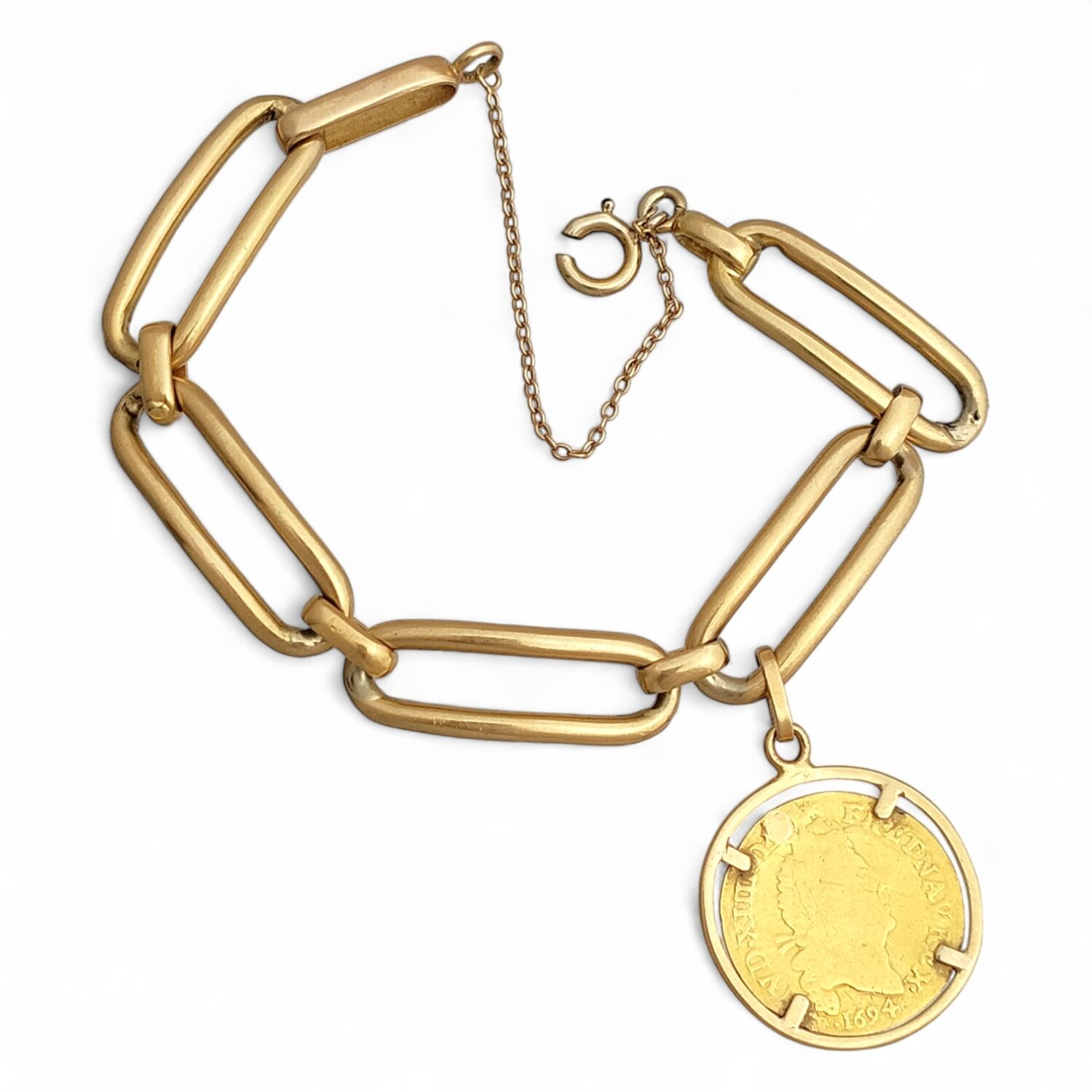 BRACELET or avec pièce or ancienne poids 23.33 g long 20 cm fermoir cassé