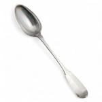 CUILLERE A RAGOUT en argent, modèle uniplat, gravée d'armoiries sous une couronne de comte Rennes, 1781 Maitre orfèvre: François Gaspard ROYSART, reçu en 1771 L.: 35.2 cm Poids: 219 gr