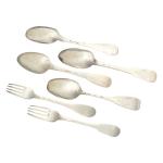 Quatre CUILLERES et deux FOURCHETTES en argent, différents modèles, certaines gravées ou armoriées XVIIIème Poids: 453 gr (chocs)