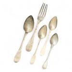 COUVERT DE BAPTEME et trois CUILLERES A THE en argent, différents modèles Paris, 1819-1838 et Minerve Poids: 139 gr (chocs)