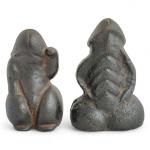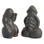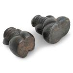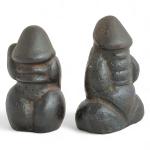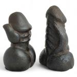 Japon, période Edo, XIXe Deux okimono, en fonte de fer, représentant des phallus "Maneki-neko warai mono". L. 9 et 9,5 cm