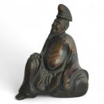Japon, période Edo Statuette en bronze, représentant le poète japonias Kakimoto no Hitomaro. H. 14 cm