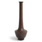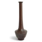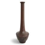 Japon, XXe Vase soliflore à long col en bronze de patine brun rouge. Marque à deux caractères sous la base "Homi" H. 21,5 cm