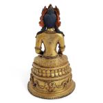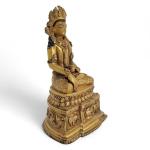 Tibet, circa 1920 Statuette en bronze, représentant Akshobhya, paré et couronné, assis sur un socle géométrique, la main droite en bhumisparsha mudra, la main gauche en dhyanamudra tenant le bol à aumône. H.18 cm