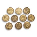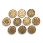 10 PIECES de 20 francs or (1852, 1858 (x2), 1861, 1862, 1863, 1865, 1868, 1878, 1889) Lot vendu sur désignation conservé en banque