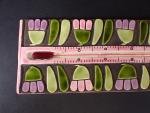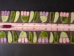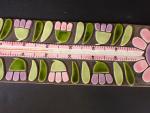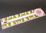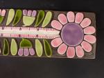 Mithé ESPELT (1923-2020) : Baromètre en céramique émaillée polychrome à décor en relief d'une fleur sur tige graduée, feutrine verte au dos, 48 x12 cm