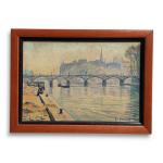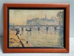 Gustave CARIOT (1872-1950) Paris, les quais de Seine, 1933. Huile sur carton toilé signée et datée en bas à droite 23 x 34 cm à vue