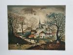 Jean RAFFY LE PERSAN (1920-2008) Le village, 1968. Lithographie signée, datée et justifiée EA en bas 50 x 65 cm (piqûres)