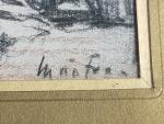 Dessin aux crayons de couleurs et fusain signé en bas à droite
