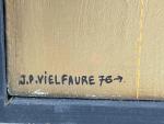 Jean-Pierre VIELFAURE (1930-2015) Identification d'une nouvelle planète, 1976. Peinture sur toile signée et datée en bas à gauche, contresignée, titrée et datée au dos 80 x 80 cm