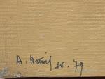 Philippe ARTIAS (1912-2002) Personnages, 1979. Acrylique sur toile signée et datée en bas à gauche, contresignée et datée au dos 50.5 x 70.5 cm (restauration)