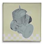 Pol GACHON (né en 1943) Moteur sur fond vert Acrylique sur toile en diptyque 80 x 80 cm et 27 x 41 cm