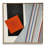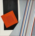 Silvano BOZZOLINI [italien] (1911-1998) Carrés rouges barres noirs, 1988. Technique mixte sur toile signée et datée en bas à droite, contresignée, titrée, située Paris et datée au dos 80 x 80 cm
