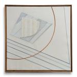 Silvano BOZZOLINI [italien] (1911-1998) Sérénité, 1990. Huile et collage sur toile signée et datée en bas à gauche, contresignée, titrée, située Elbe et datée au dos 50 x 50 cm