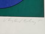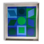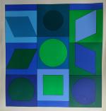 Victor VASARELY (1906-1997) Composition en verre et bleu Lithographie signée en bas à droite, justifiée 56/150 en bas à gauche 82.5 x 74 cm à vue