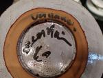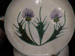 Etienne DANIEL à VALLAURIS - Partie de service de table (13 pièces) en céramique émaillée à décor de chardons sur fond gris perle comprenant : un pichet couvert, 9 assiettes plates, 1 cendrier, 2 bols, le tout marqué au revers (usures)