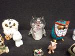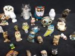 Collection de petits sujets hibou miniature en céramique verre, résine etc dont trois pièces CHRISTOFLE. Haut moyenne : 7 cm(usures)