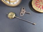 Partie de pendule dont cadran, mécanisme, balancier et clé (usures, fonctionnement non garanti)