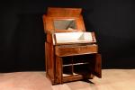 Commode chemin de fer d'époque XIX's, abattant à mécanisme découvrant un intérieur en marbre blanc et un miroir, un tiroir et deux portes en partie basse. H. 103 cm. Larg. 96 cm. Prof. 50 cm