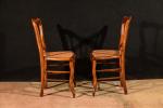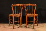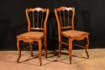 Paire de chaises cannées d'époque XIX's en merisier, à dossiers barrettes, pieds cambrés.