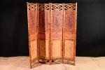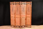 CHINE - Paravent à cinq feuilles en osier tressé et structure en bois exotique. H. 184 cm. Larg. d'une feuille : 41 cm