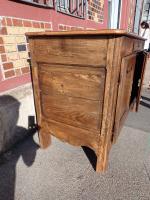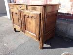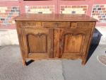 Buffet bas en chêne rustique d'époque XIXème ouvrant à deux portes, un faux tiroir et un abattant. Dim 95x135x65 cm (usures, avec une clé)
