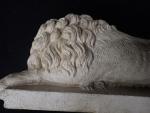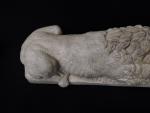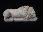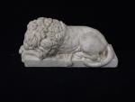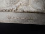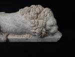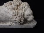 C. H. EDMOND PARIS. Deux lions couchés en plâtre patiné,...