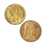 2 PIECES de 20 francs or, 1868, 1906 Vendu sur désignation, lot conservé en banque