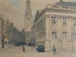 Henry Maurice CAHOURS (1889-1974) Paris, la Tour Saint Jacques Dessin aquarellé signé en bas à droite 23 x 30 cm à vue (petites piqûres)