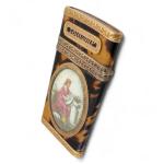 ETUI Souvenir d'amitié en écaille, or et métal doré, à décor de deux miniatures XIXème 8.5 x 5.1 cm (restaurations à la charnière, la monture à refixer)