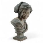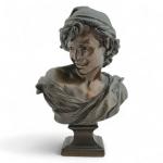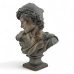 Buste en bronze patiné, signé, cachets à l'aigle et "Propriété Carpeaux"