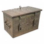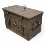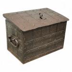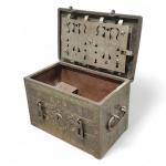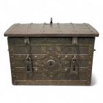 COFFRE DE MARINE en fer forgé, deux poignées mobiles sur les côtes XVIIème H.: 50 cm l.: 78 cm P.: 53 cm (complet de sa clé)