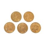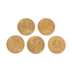 5 PIECES or 20 francs coq (1899, 1902, 1906, 1907, 1912) Lot conservé en banque, vendu sur désignation