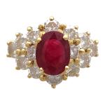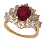 BAGUE en or jaune sertie d'un rubis ovale entouré de diamants ronds poids 5.4 g TDD 52