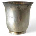 TIMBALE en argent, reposant sur une légère bâte, gravée XVIIIème Maitre orfèvre: SPG abonné à la marque H.: 6.5 cm Poids: 69 gr