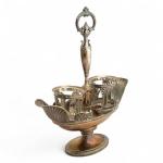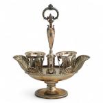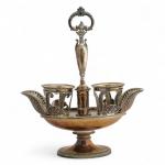 Monture d'HUILIER VINAIGRIER en argent de forme navette, reposant sur un piédouche, à décor de godrons et palmettes, la prise en forme d'amphore avec anneau Paris, 1819-1838 H.: 35 cm Poids: 748 gr