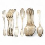 Douze FOURCHETTES et douze CUILLERES en argent, modèle filets, chiffrées Vieillard et Minerve Poids: 1 kg 954