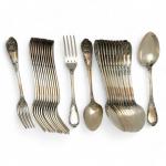 Suite de treize COUVERTS en argent, modèle filets feuillagés, armoiries d'alliances sous une couronne de comte en applique Minerve. Orfèvre: Jules GRANVIGNE Poids: 2 kg 227