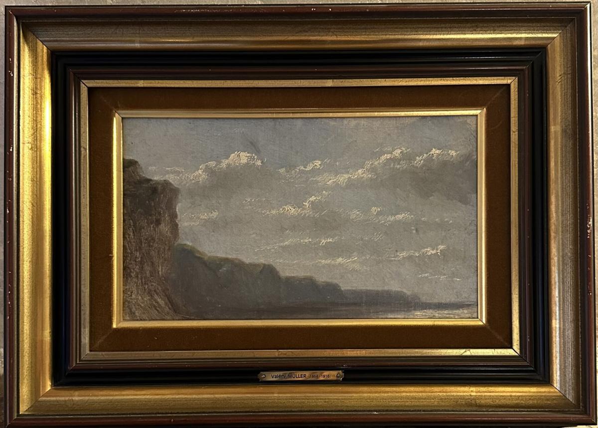 anciennement attribué à Valéry MÜLLER (1859-1916) Les falaises Huile sur toile 18.5 x 31 cm