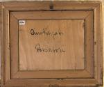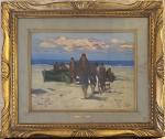 ECOLE du XXème Sur la plage Huile sur panneau signée en bas à gauche, contresignée au dos 29 x 39.5 cm à vue