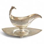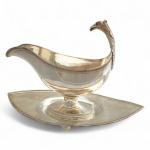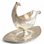 SAUCIERE et son DORMANT en argent de forme navette, décor d'une frise de palmettes, la prise à tête d'aigle