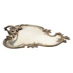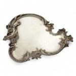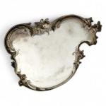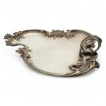 PLATEAU en argent de forme libre, la bordure moulurée de feuillage et frise avec poignée Travail étranger 27 x 20 cm Poids: 382 gr