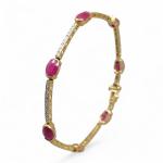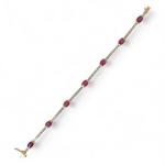 BRACELET ligne en or jaune serti de sept rubis et pavage de petits diamants Poids 9.4 g, long 18.5 cm