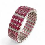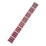 BRACELET ruban en or gris sertie de quatre lignes de rubis ovales facettés pour un poids total d'environ 90 carats et 8 barrettes pavées de diamants Poids: 86.6 g, long 19 cm largeur 21 mm