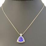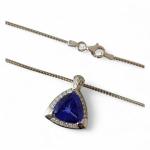 COLLIER chaine en or gris retenant un pendentif serti d'une tanzanite troïda pesant environ 7 carats et petits diamants Poids: 13.5 g, long chaine 44 cm