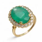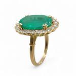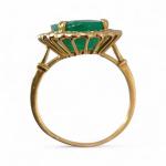 BAGUE marguerite en or jaune sertie d'une émeraude ovale entourée de petits diamants Poids: 5.8 g TDD 55