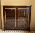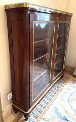 BIBLIOTHEQUE BASSE formant VITRINE en acajou et placage d'acajou, ouvrant à deux portes vitrées en façade, les montants cannelés et rudentés, estampillée J. CANABAS et poinçon de jurande JME, dessus de marbre à galerie