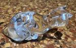 BACCARAT Chat couché en cristal, signé de la pastille ronde L.: 12.5 cm